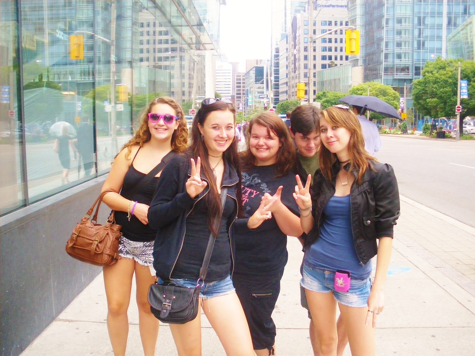 Wow. Today has been a dream come true for me. #TMI is my life and I got the opportunity to go down to the set and get pics and autographs. To start, my name’s Kelly Henderson (@_NightAssassin) and my twin is Jessie (@MercenaryMaddox). We woke at 5:30am to reach the set at 8:00am via car/train. My friends, Chris, who sleep over and Hunter, who met us at the train station, joined us for the trip. We arrived in Toronto and not too long after did we meet up with two other #TMIFans: @Haley_Davies @Ashley_Fodor. Together we walked up University Street and took a couple pictures with the thought that the set would be at the “institute”. Almost there I spotted a CBC News car and decided to ask if the girl knew where the set was. The Reporter didn’t know what TMI was, so I explained as briefly as possible. She then said she noticed trucks and trailer by -----. The six of us were off again, heading back down University Street.