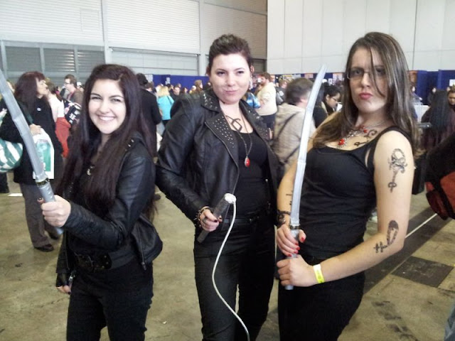 During this event, a group of shadow hunter cosplayers managed to find ourselves and take a few photos. At one point during the group photo we had ten people taking pictures of us. 'Us' included Maddie (twitter user @jemcarstears), Margie (twitter user @xmargie22x), Me (Twitter user @sizzyled), Lizzie (twitter user @claryeverlarks) and others who dressed up as Izzy and Clary.