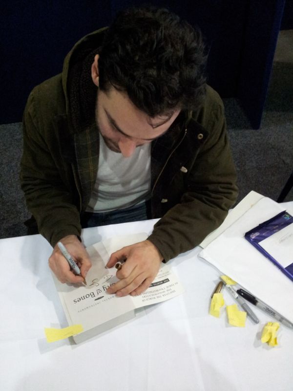 During the event, the guests were signing autographs and taking professional pictures with patrons. During Aidan's autograph signing he was signing Hobbit merchandise until he had got to me. I got to the front of the line and handed my book over to Aidan, to which he responded with "This is my first City of Bones signing ever did you know?" he also said that he liked my runes and that i made a beautiful Izzy (I almost started to cry). He signed my book "first CoB signing!" and this message will only ever be on my book.